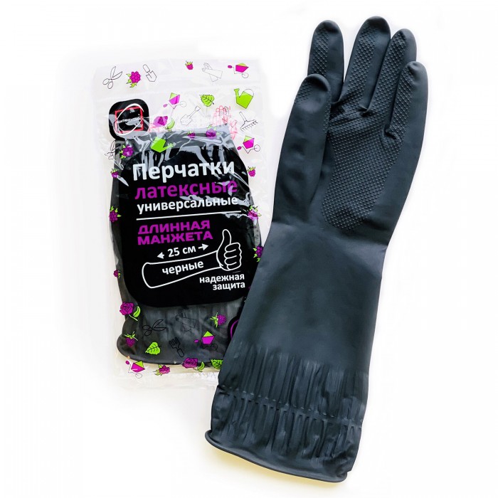 Перчатки МНОГОРАЗОВЫЕ латексные ДЛИННАЯ МАНЖЕТА 25 см ЧЕРНЫЕ, размер M (средний), вес 80 г, КП, 139595