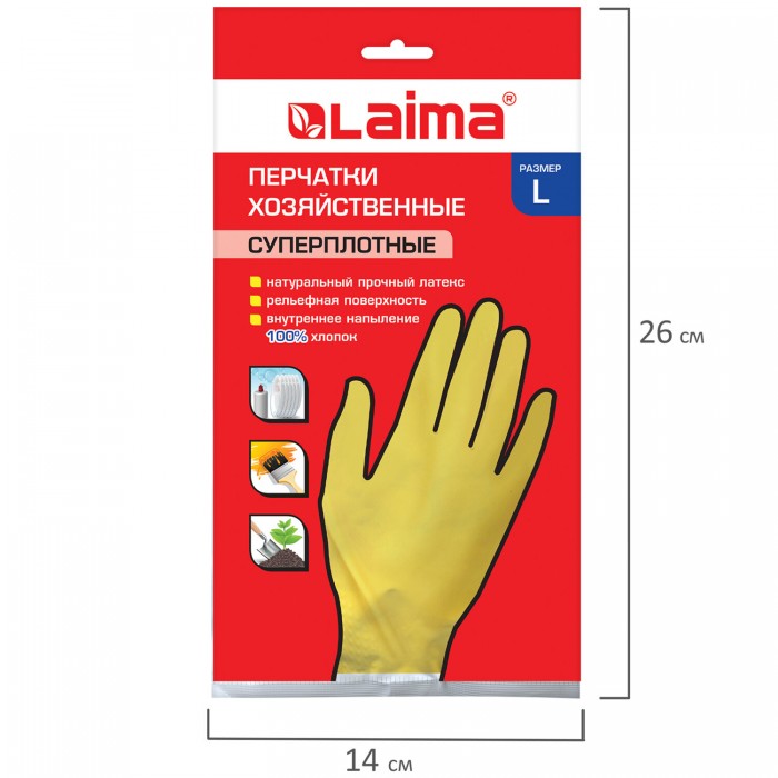 Хозяйственные латексные перчатки LAIMA защищают руки от воздействия грязи, влаги, моющих и чистящих средств при любых бытовых и хозяйственных работах: мытьё посуды, стирка белья, уборка, садоводческая работа и т.д.