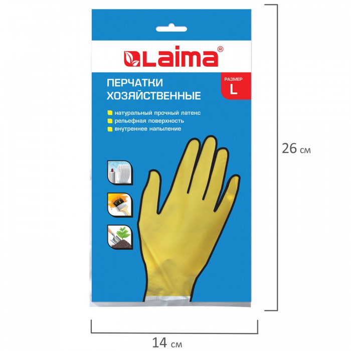 Хозяйственные латексные перчатки LAIMA "Стандарт" защищают руки от воздействия грязи, влаги, моющих и чистящих средств при любых бытовых и хозяйственных работах: мытьё посуды, стирка белья, уборка, садоводческая работа и т.д.