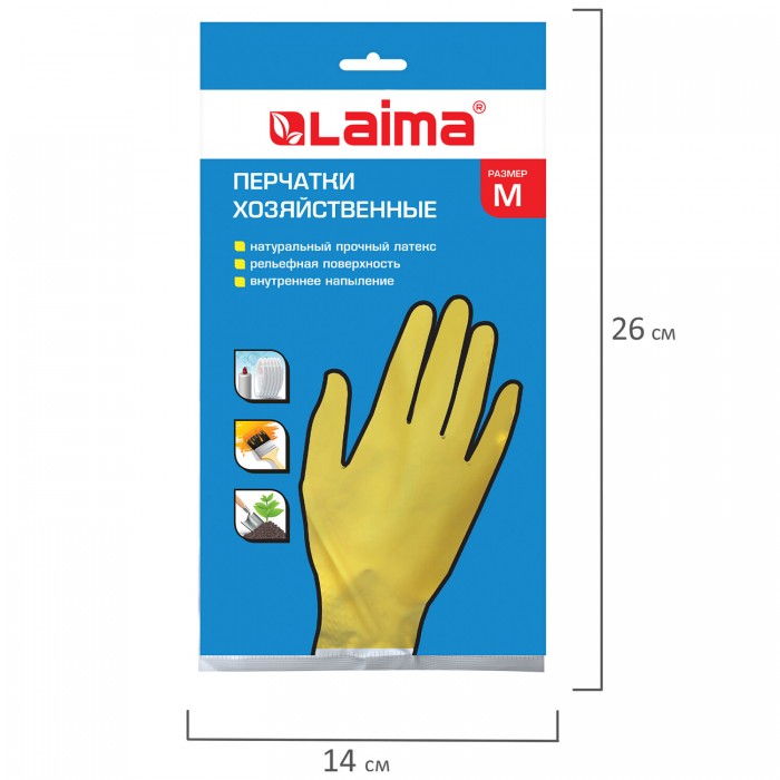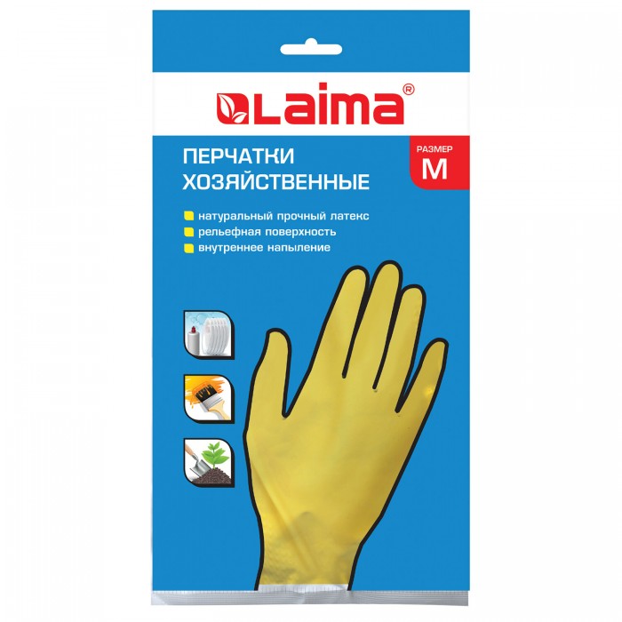 Хозяйственные латексные перчатки LAIMA "Стандарт" защищают руки от воздействия грязи, влаги, моющих и чистящих средств при любых бытовых и хозяйственных работах: мытьё посуды, стирка белья, уборка, садоводческая работа и т.д.