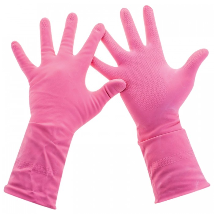 Перчатки МНОГОРАЗОВЫЕ латексные PACLAN "Practi Comfort", хлопчатобумажное напыление, размер M (средний), розовые, вес 62 г, 407271