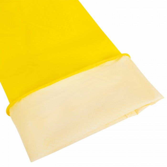 Перчатки МНОГОРАЗОВЫЕ латексные с хлопчатобумажным напылением, размер XL (очень большой), вес 61 г, желтые, KOMFI, DGL027P