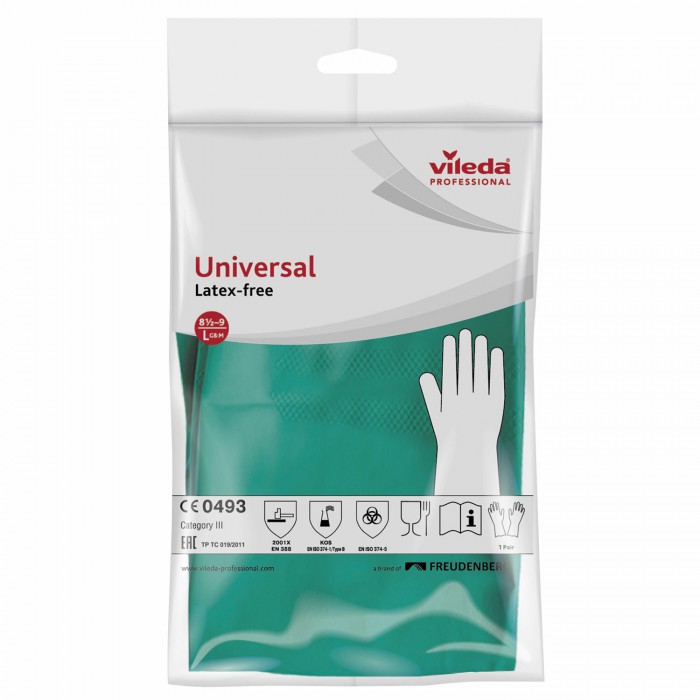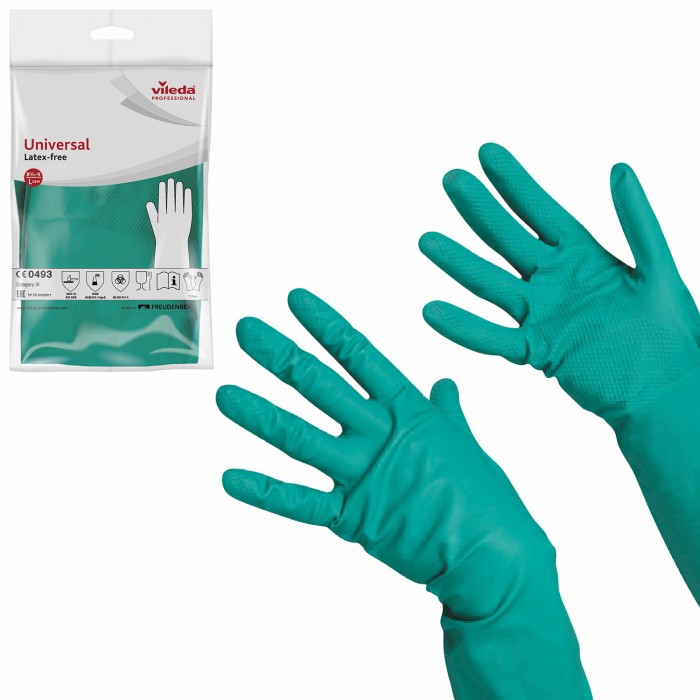 Перчатки МНОГОРАЗОВЫЕ нитриловые VILEDA универсальные, антиаллергенные, размер L (большой), зеленые, вес 66 г, 174383
