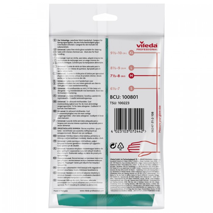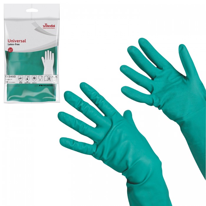 Перчатки МНОГОРАЗОВЫЕ нитриловые VILEDA универсальные, антиаллергенные, размер M (средний), зеленые, вес 64 г, 174381