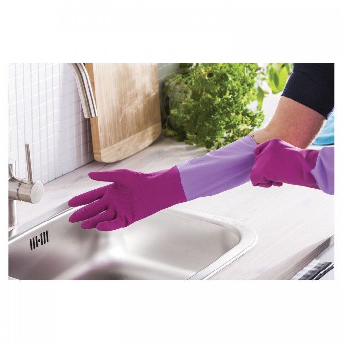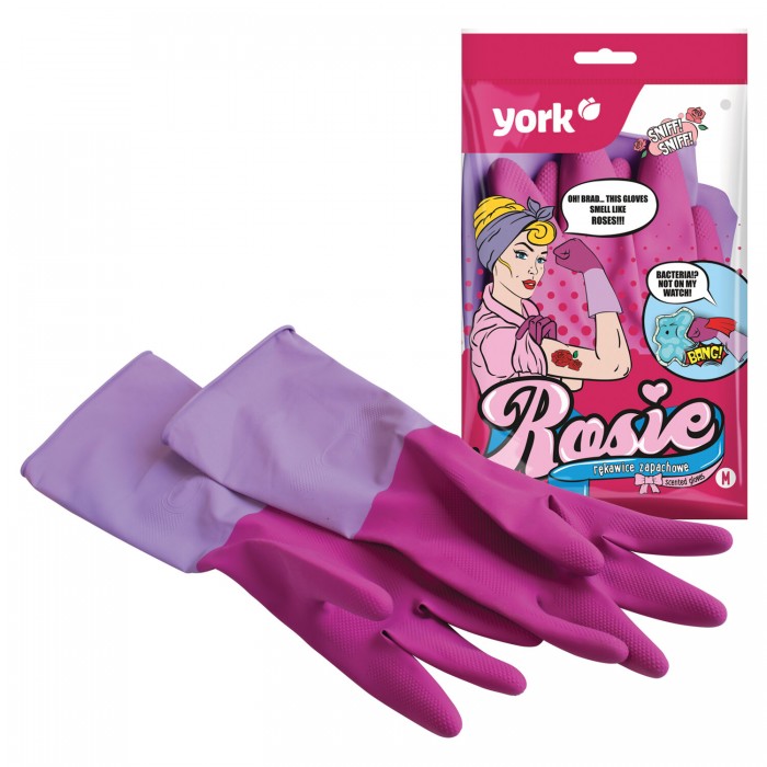 Чрезвычайно прочные резиновые перчатки YORK с удлиненной манжетой и нежным ароматом розы сделают хозяйственные работы дома или в саду гораздо приятнее. Они не вызывают раздражения на коже, защищают от вредного воздействия внешних факторов.