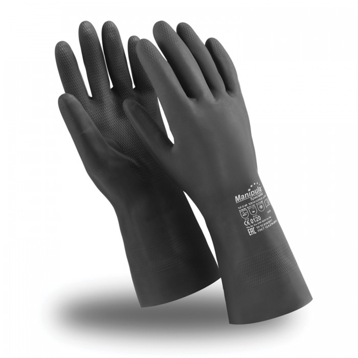 Герметичные перчатки из 100% неопрена, стойкие к кислотам и щелочам высоких концентраций, органическим растворителям (этанол, бензин), растительным жирам, нефти и нефтепродуктам (минеральным маслам).