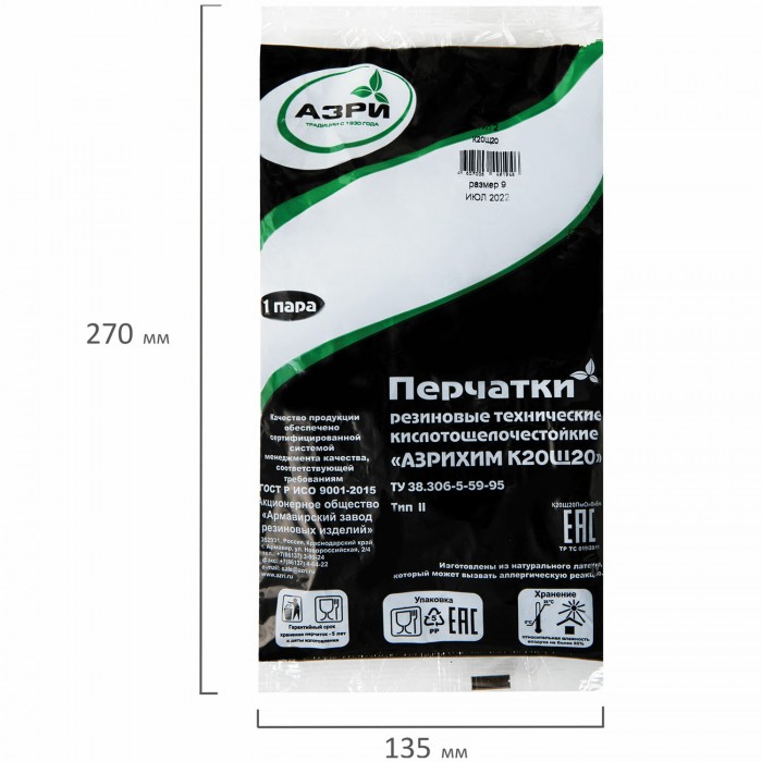 В интернет-магазине AV Group можно купить Перчатки резиновые технические кислотощелочестойкие КЩС Тип-2, АЗРИ, размер 9, L (большой), К20Щ20, производитель Россия, артикул - по цене 200 руб. Продаем физическим и юридическим лицам, при условии минимальной суммы заказа (общей суммы в корзине) от 5 тысяч рублей. Возможна доставка курьером по Верхней Пышме, Екатеринбургу и Свердловской области. В регионы отправляем транспортной компанией. Чтобы уточнить необходимое количество товара и дополнительные условия, звоните: 8(800)201-75-47, менеджер вас проконсультирует.