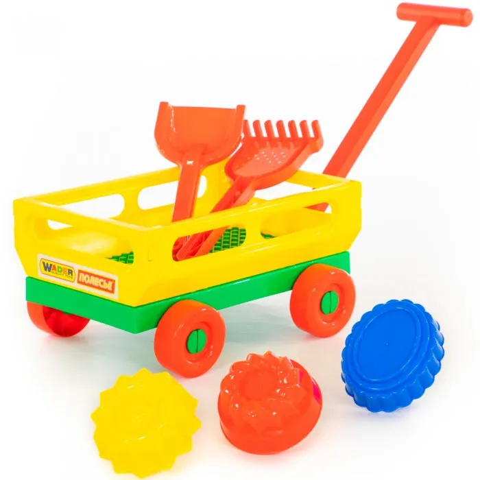 Комплектация: тачка, совок, грабли, 3 формочки Материал: пластик Упаковка: сетка Размер упаковки: 43*29*19,7 см Страна обладатель бренда: Россия Песочный набор подходит для игр с песком и водой как на улице, так и в помещении. Во время игры ребенок будет изучать формы, цвета, развивать фантазию, усидчивость и познавать окружающий мир. Маленькие строители будут с увлечением лепить красивые фигурки. С таким набором скучать в песочнице или у воды точно не придется. Игрушка выполнена из качественного, безопасного материала. Отличный детский набор для развития мелкой моторики рук и пальцев.