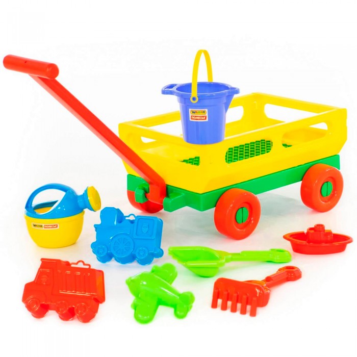 Комплектация: тачка, ведро, кораблик, 3 формочки, лопата, грабли, лейка Материал: пластик Упаковка: сетка Размер упаковки: 43*29*21,8 см Страна обладатель бренда: Беларусь Красочный песочный набор станет замечательным подарком малышу. Этот набор малышу будет удобно возить с собой в специальной тачке с удобной ручкой. Песочный набор подходит для игр с песком и водой как на улице, так и в помещении. Во время игры ребенок будет изучать формы, цвета, развивать фантазию, усидчивость и познавать окружающий мир. Маленькие строители будут с увлечением лепить красивые фигурки. С таким набором скучать в песочнице или у воды точно не придется. Игрушка выполнена из качественного, безопасного материала. Отличный детский набор для развития мелкой моторики рук и пальцев.