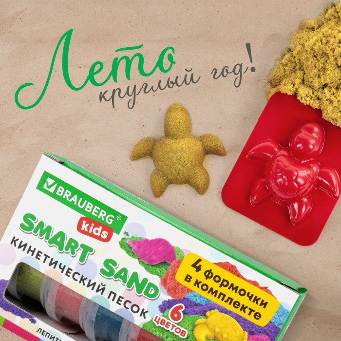 Песок для лепки кинетический BRAUBERG KIDS, 6 цветов, 720 г, 4 формочки, 665090 в интернет-магазине AV Group по цене от 440 руб. с доставкой по Верхней Пышме, Екатеринбургу и Свердловской области. Минимальная сумма заказа в корзине - от 10 т.р.