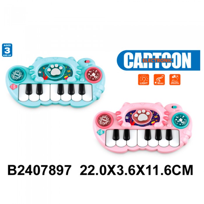 Размер упаковки: 13,5 х 3,5 х 28 см Размер изделия: 22 х 3 х 10,5 см Функционал: детские музыкальные инструменты Вид упаковки: пакет Страна производитель: КНР Материал: полимеры Комплектация: пианино - 1 шт Возраст ребенка: для детей от 3 лет Детское музыкальное пианино - инструмент, который позволит ребенку проявить свои творческие возможности. Характеристики: - 7 белых клавиш - 5 черных клавиш - 3 цветные кнопки - кнопка включения - кнопка переключения звуков - пианино работает в двух режимах (клавиши и мелодии) - подсветка - для работы пианино необходимы 3 батареи АА 1.5 V (не входят в комплект)