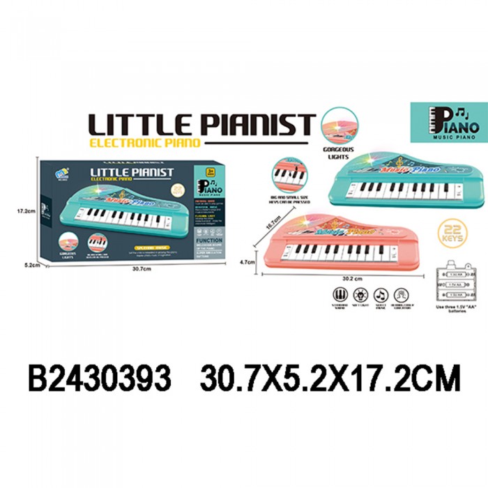 Размер упаковки: 30,7*5,2*17,2 см Размер изделия: 30,2*16,7*4,7 см Питание: 3 батарейки АА Функционал: музыкальный инструмент Упаковка: картонная коробка Страна обладатель бренда: Китай Материал: пластик, металл Комплектация: пианино - 1 шт. Возраст ребенка: от 1 года Детский музыкальный инструмент - пианино - это отличный способ привить малышу любовь к музыке уже с ранних лет. Пианино выполнено в ярком дизайне. Воспроизводит мелодии и звуки. Имеются световые эффекты: загораются яркие цветные огоньки, которые мигают под музыку. При нажатии на разные кнопки ребенок будет развивать слуховое восприятие, чувство ритма и такта, а также моторику рук, воображение и творческие способности. Пианино состоит из клавиш и множества кнопок, которые позволяют изменять ритм и тембр, а также добавлять звуки. Игрушка познакомит ребенка с музыкальной грамотой, позволит воспроизводить известные произведения, а также создавать собственные.