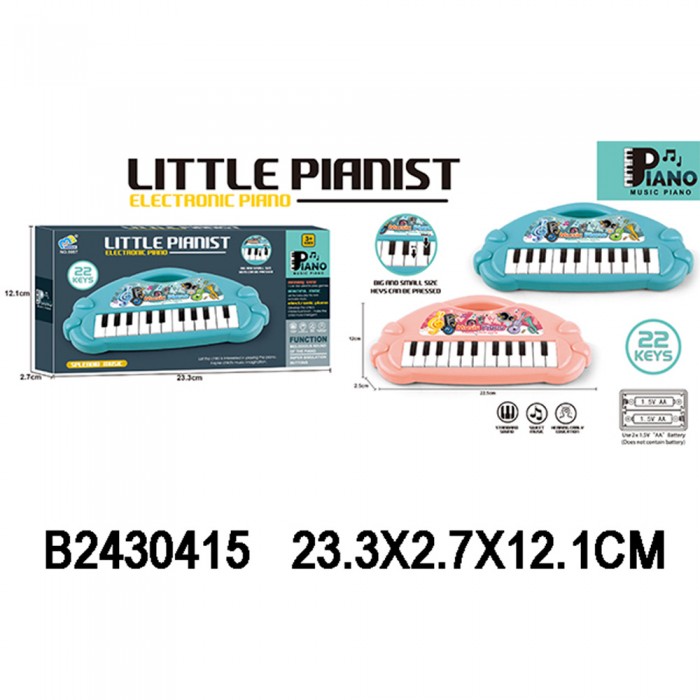 Размер упаковки: 23,3*2,7*12,1 см Размер изделия: 22,5*12*2,5 см Питание: 2 батарейки АА Функционал: музыкальный инструмент Упаковка: картонная коробка Страна обладатель бренда: Китай Материал: пластик, металл Комплектация: пианино - 1 шт. Возраст ребенка: от 1 года Детский музыкальный инструмент - пианино - это отличный способ привить малышу любовь к музыке уже с ранних лет. Пианино выполнено в ярком дизайне. Воспроизводит мелодии и звуки. При нажатии на разные кнопки ребенок будет развивать слуховое восприятие, чувство ритма и такта, а также моторику рук, воображение и творческие способности. Пианино состоит из клавиш и множества кнопок, которые позволяют изменять ритм и тембр, а также добавлять звуки. Игрушка познакомит ребенка с музыкальной грамотой, позволит воспроизводить известные произведения, а также создавать собственные.