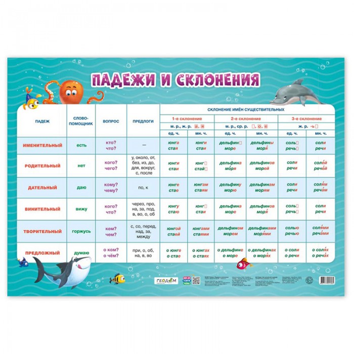 Плакат дидактический Геодом "Падежи и склонения", 450*640мм в интернет-магазине AV Group по цене от 93 руб. с доставкой по Верхней Пышме, Екатеринбургу и Свердловской области. Минимальная сумма заказа в корзине - от 10 т.р.