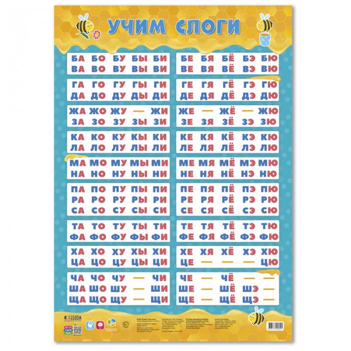Плакат дидактический Геодом "Учим слоги", 450*640мм в интернет-магазине AV Group по цене от 83 руб. с доставкой по Верхней Пышме, Екатеринбургу и Свердловской области. Минимальная сумма заказа в корзине - от 10 т.р.