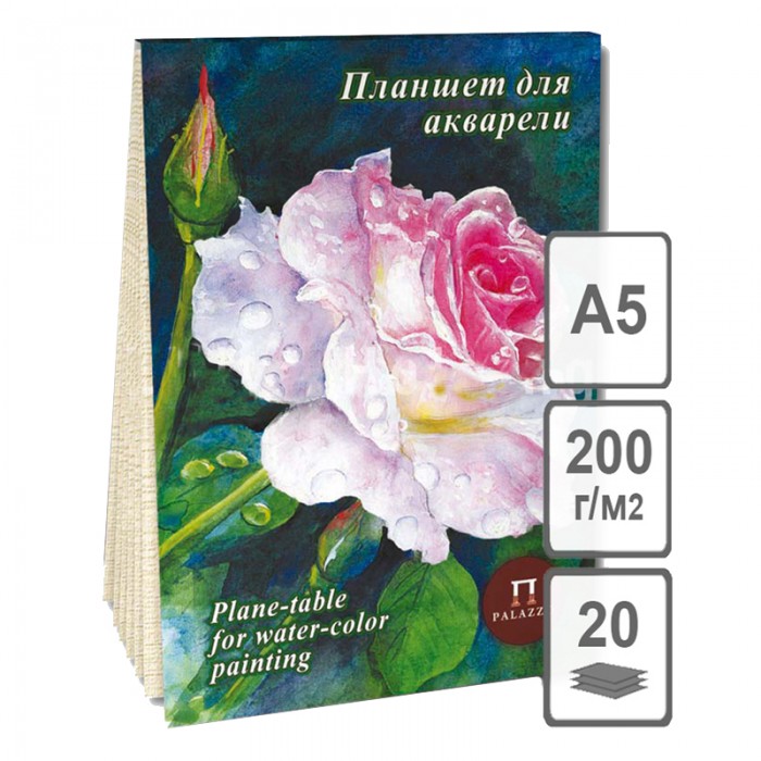 Планшет для акварели, 20л., А5 Лилия Холдинг "Розовый сад", 200г/м2, лен, палевая бумага