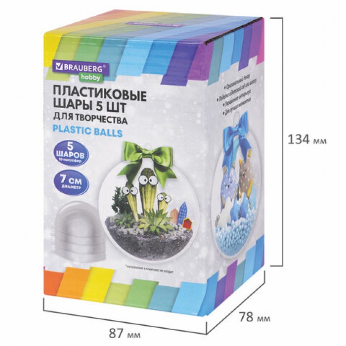 Пластиковые шары для поделок BRAUBERG HOBBY предназначены для создания уникальных новогодних украшений, красочных поделок и аксессуаров для дома.