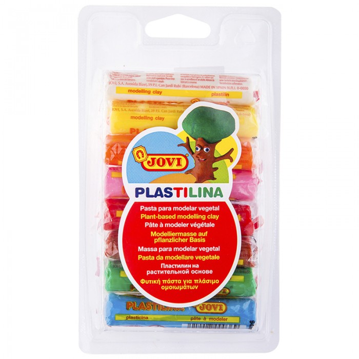 Легендарный пластилин JOVI. • на растительной основе • безопасен • гипоаллергенен • без продуктов нефтепереработки • не содержит глютен Не пачкает руки, снимается с любой поверхности без усилий, не оставляя пятен. Очень пластичен, не высыхает, держит форму, не крошится, фигурки не опадают со временем, цвета прекрасно смешиваются между собой. Идеален для начала обучения лепке и для уроков в школе и творческих студиях. Используется для техники "Рисование пластилином" и пластилиновой мультипликации. Набор пластилина из восьми цветов (белый, желтый, оранжевый, розовый, красный, голубой, зеленый, коричневый) по 15 грамм в блистере с европодвесом. Страна производства Испания.