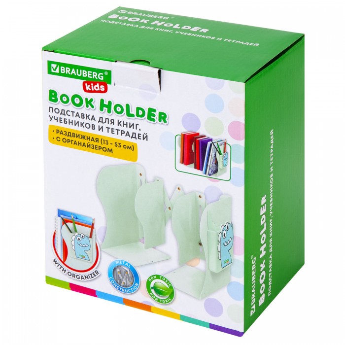Раздвижная подставка-держатель для книг BRAUBERG KIDS с ярким интересным дизайном поможет навести порядок и организовать рабочее пространство на письменном столе.