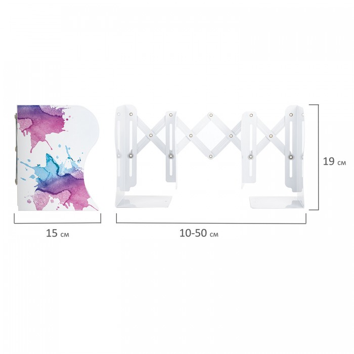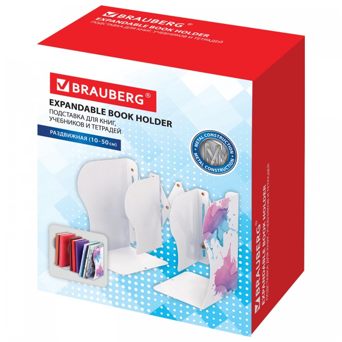 Подставка-держатель для книг и учебников BRAUBERG, раздвижная, металлическая, белая с печатью, 237903
