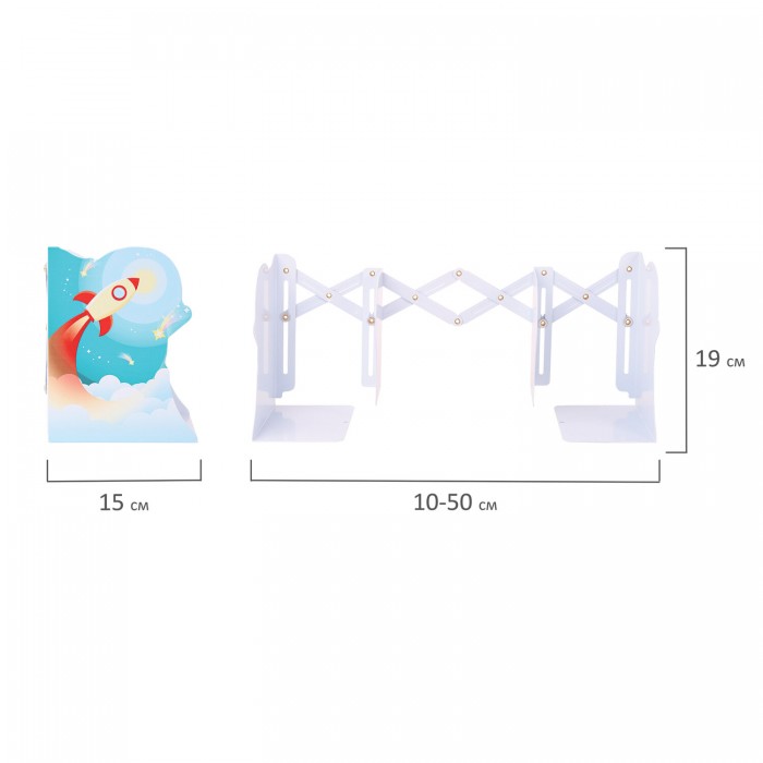 Подставка-держатель для книг и учебников фигурная BRAUBERG KIDS "Cosmo" раздвижная, металлическая, 238068