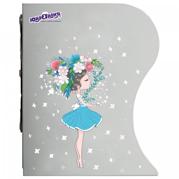 Подставка-держатель для книг и учебников ЮНЛАНДИЯ "Flower girl", раздвижная, металлическая, 237902