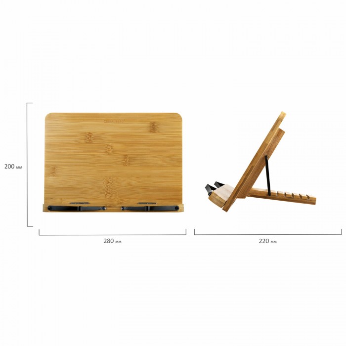 Подставка для книг и планшетов бамбуковая BRAUBERG, 28х20 см, регулируемый наклон, 237895