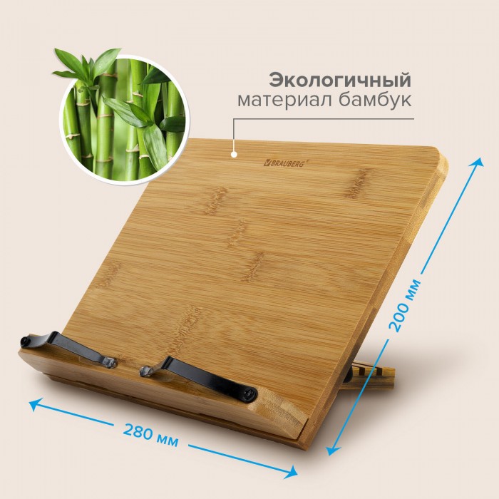 Бамбуковая подставка для книг BRAUBERG - Ваш идеальный выбор для удобного расположения учебных материалов, книг, презентаций, а также гаджетов при чтении, просмотре видео. Незаменимый помощник дома и в офисе, идеально впишется в любой интерьер.