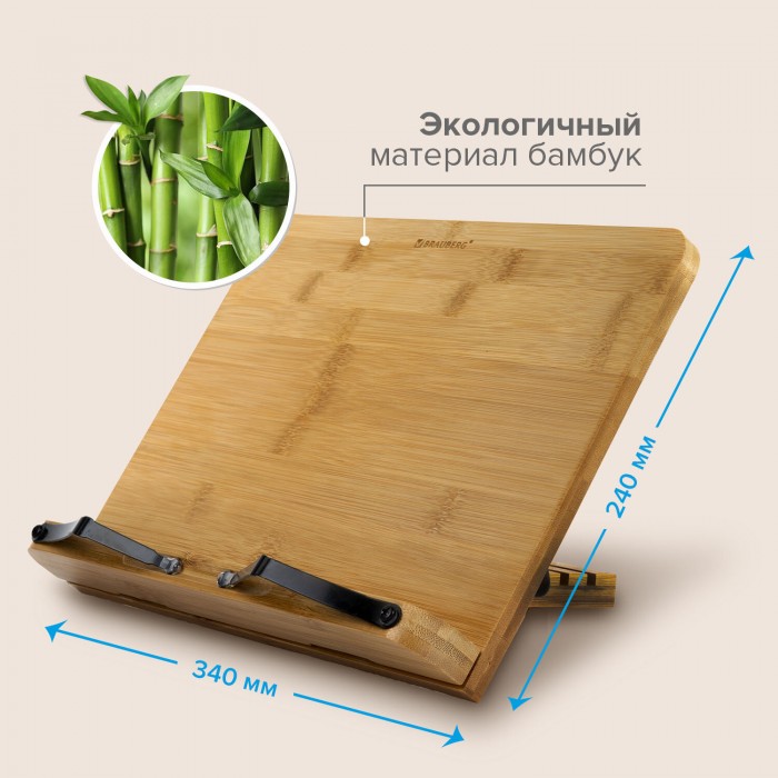 Подставка для книг и планшетов большая бамбуковая BRAUBERG, 34х24 см, регулируемый наклон, 237896