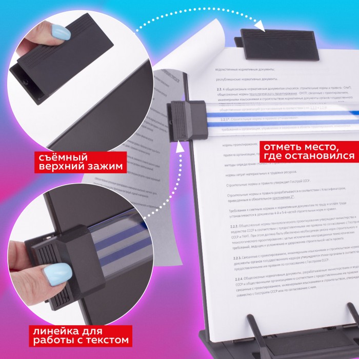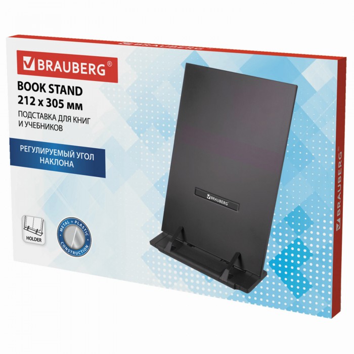 Большая подставка BRAUBERG для книг обеспечивает комфорт при чтении или перепечатывании текста.