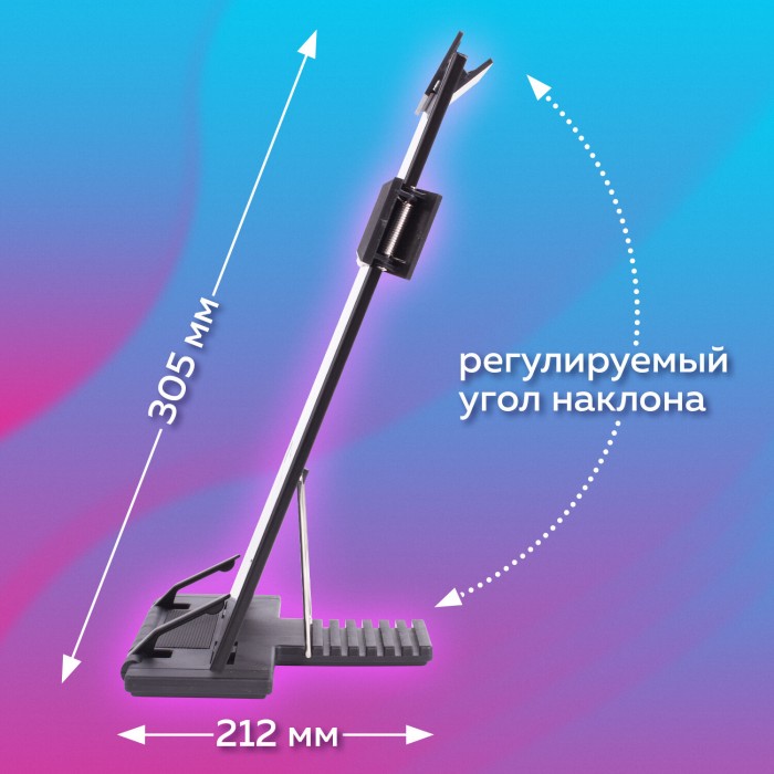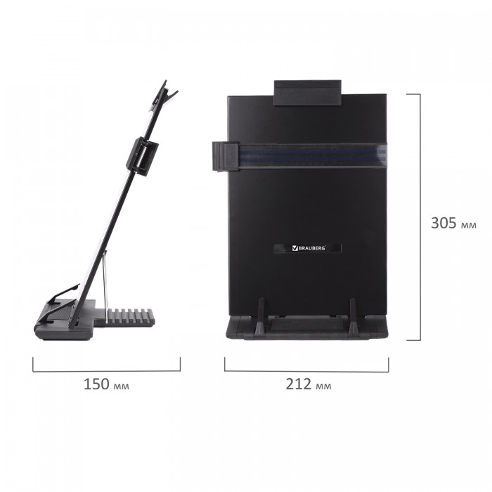 Подставка для книг и учебников BRAUBERG, большая, регулируемый наклон, металл/пластик, черная, 237447