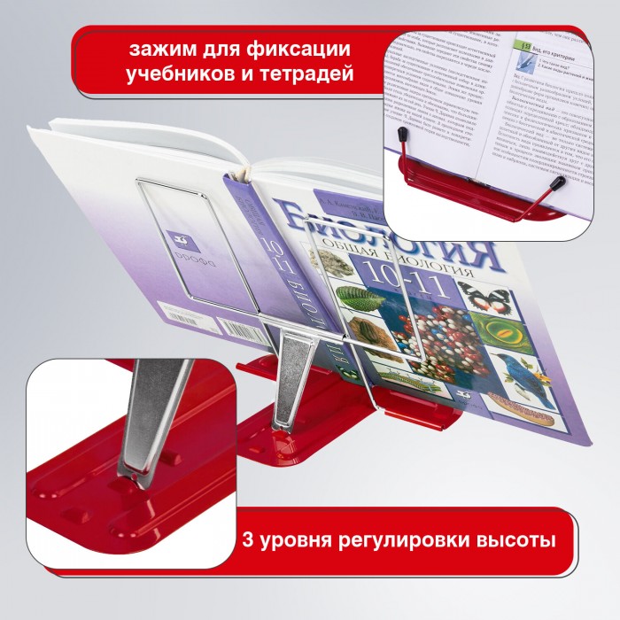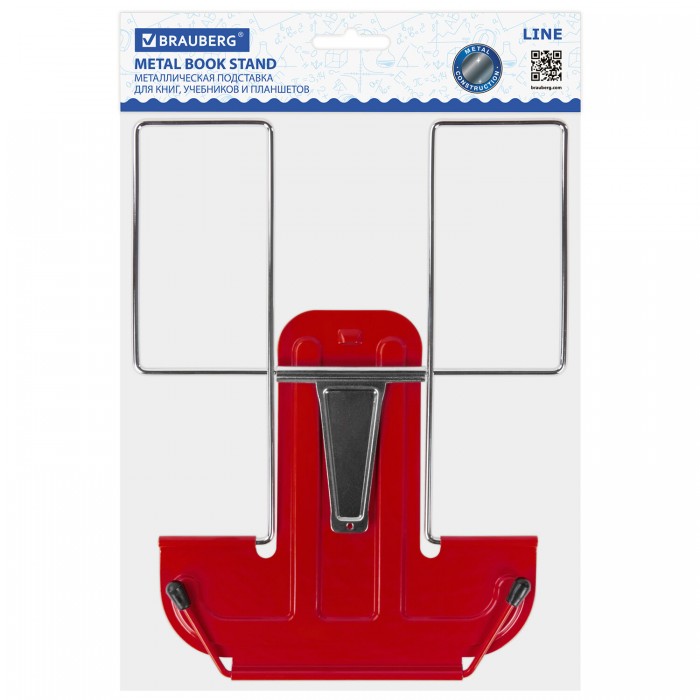 Подставка для книг и учебников BRAUBERG LINE, металлическая, красная, европодвес, 237965