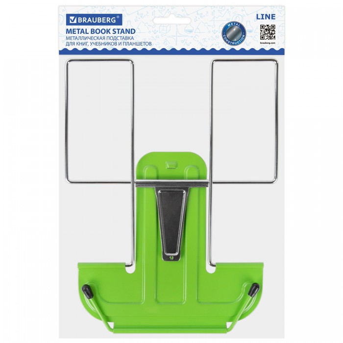 Подставка для книг и учебников BRAUBERG LINE, металлическая, зеленая, европодвес, 237967