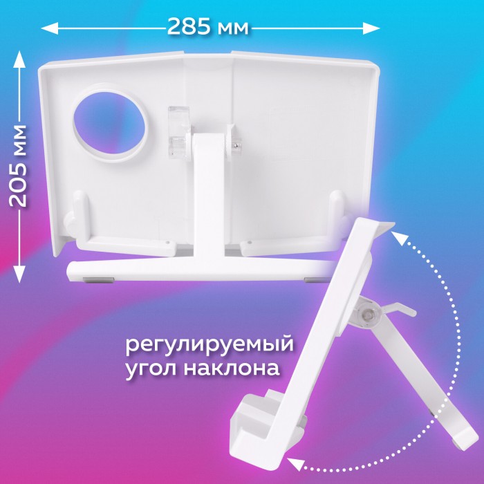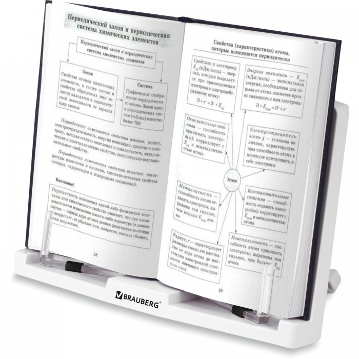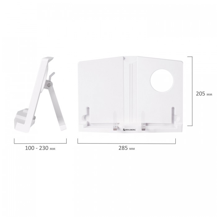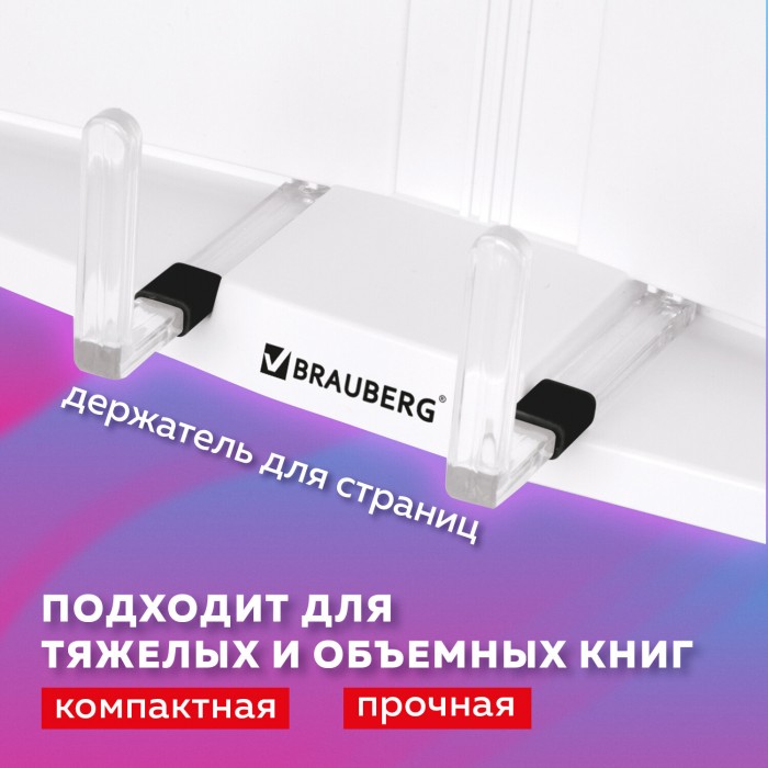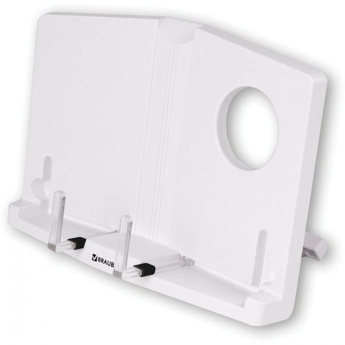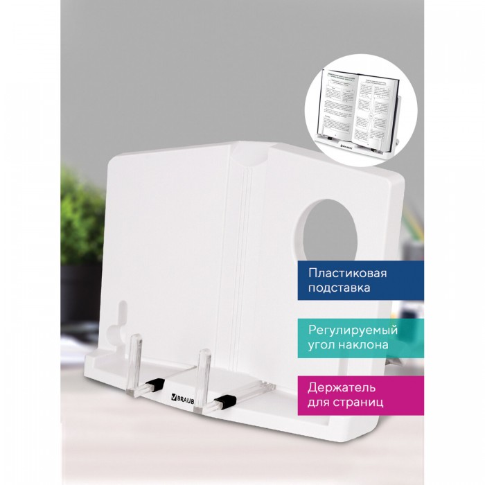 Подставка для книг и учебников BRAUBERG, регулируемый наклон, пластик, белая, 237445