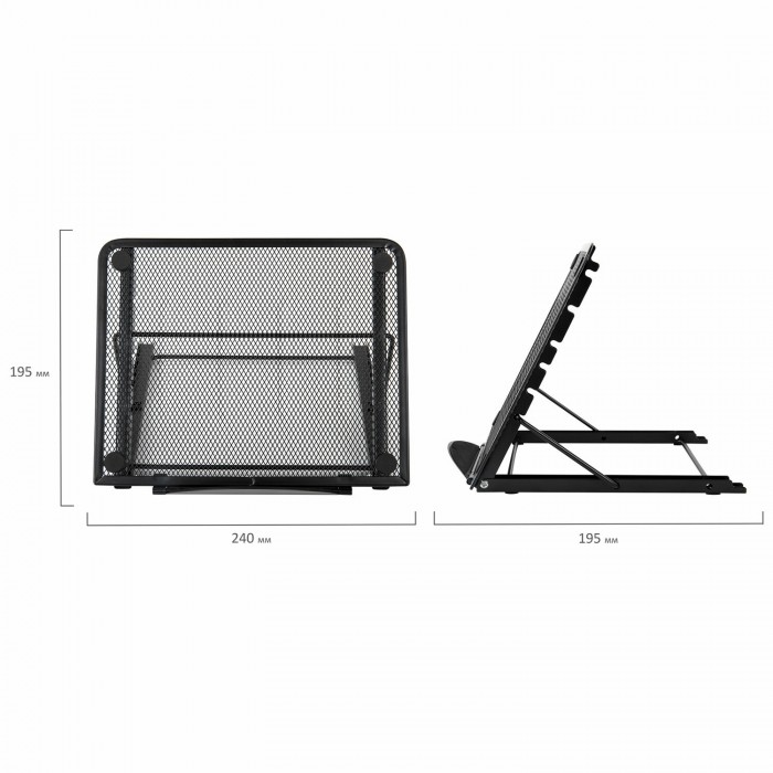 Подставка для книг, ноутбуков, планшетов, BRAUBERG "Germanium", 240х195х20 мм, черная, металл, 237987