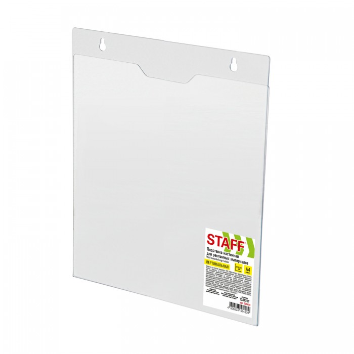 Подставка настенная для рекламных материалов ВЕРТИКАЛЬНАЯ (210х297 мм), А4, ПЭТ, STAFF, 291400