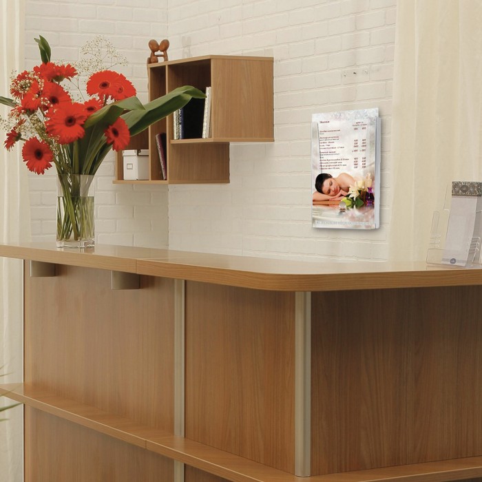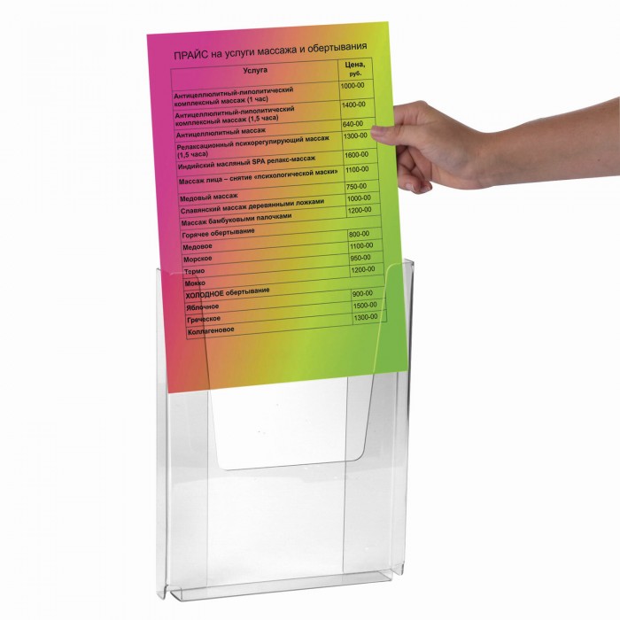 Вертикальная настенная подставка STAFF подходит для размещения рекламной или другой печатной продукции формата А4 и меньше.