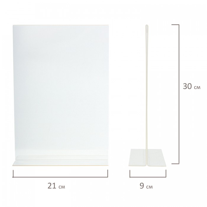 Двухсторонняя вертикальная настольная подставка BRAUBERG подходит для размещения меню, рекламных материалов формата А4.