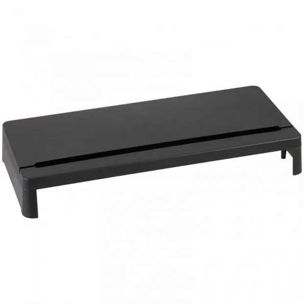 Подставка под монитор выполнена из пластика, практичная и функциональная. Под поставкой можно разместить клавиатуру, что поможет в оптимизации места на рабочем столе. Резиновые накладки на опорах препятствуют скольжению. Габариты 510х240х74мм.