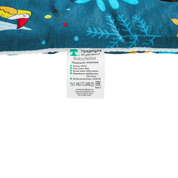| Краткое наименование | Подушка плоская 40х60 "BabyRelax" файбер, "Тропические птички (синий)" |