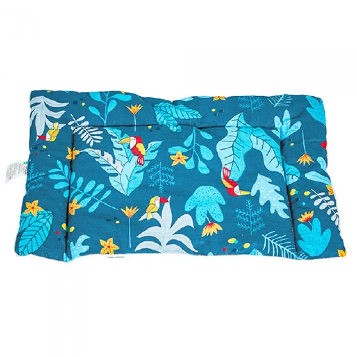 Подушка для детского сада плоская 40х60 "BabyRelax" файбер, "Тропические птички (синий)", бязь