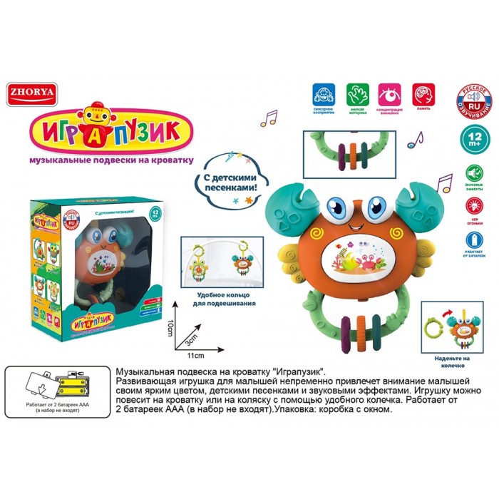 Подвеска ZYA-A3179-3 Играпузик крабик русск. озвуч. в кор.