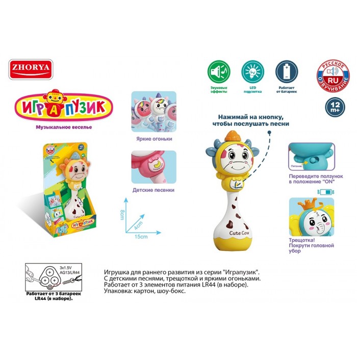 Погремушка ZYA-A3037-5 Играпузик коровка русск. озвуч. в кор.
