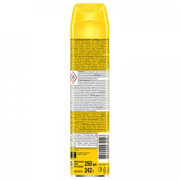 Полироль для мебели 250 мл, PRONTO "Антипыль" Антиаллерген, аэрозоль, 864904