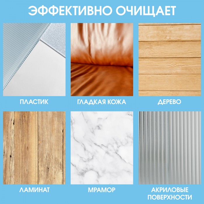 Эффективно удаляет загрязнения со всех поверхностей в помещении, а также нейтрализует аллергенные частички пыли. Специальный состав обеспечивает мягкое очищение поверхностей, надолго сохраняя сияющий глянец. Средство подходит для уборки детских комнат.
