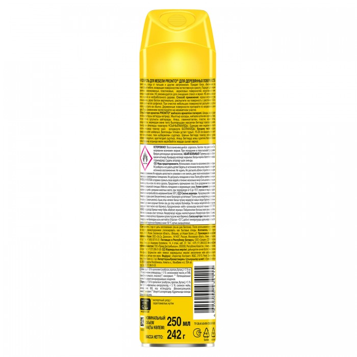 Полироль для мебели и деревянных поверхностей 250 мл, PRONTO (Пронто), аэрозоль, 864905