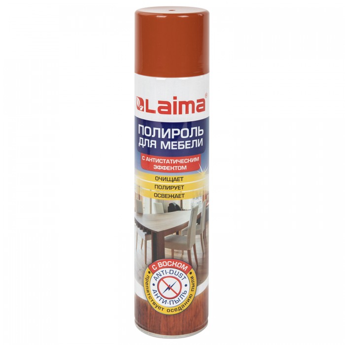 Полироль для мебели LAIMA "Антипыль" быстро и эффективно очищает, полирует и препятствует оседанию пыли, обладает антистатическим эффектом.