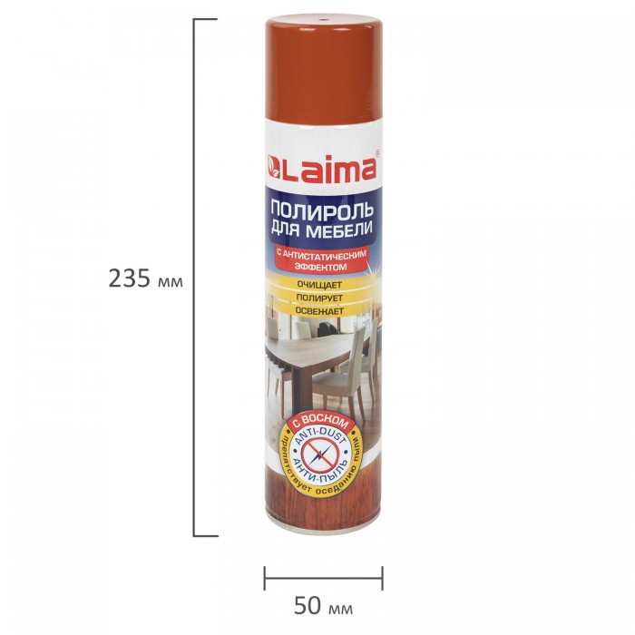Полироль для мебели LAIMA "Антипыль" с воском и антистатиком, 300 мл, аэрозоль, 606511
