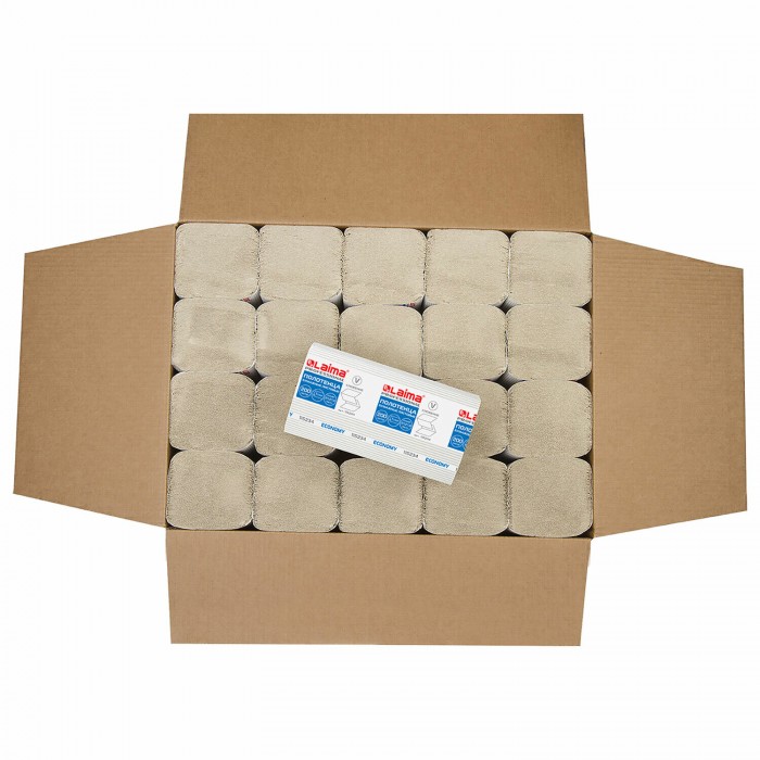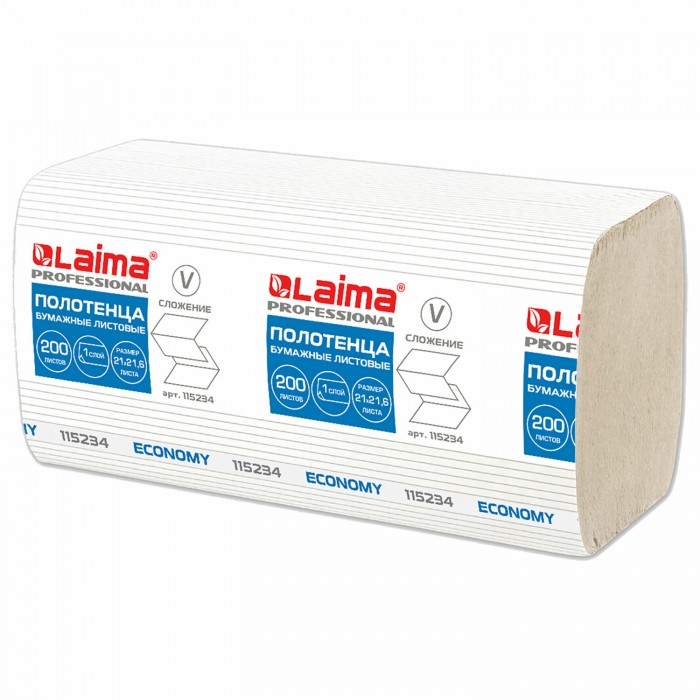 Полотенца бумажные 200 шт., LAIMA ECONOMY (H3), 1-слойные, натуральный цвет, КОМПЛЕКТ 20 пачек, 21х21,6 см, V-сложение, 115234