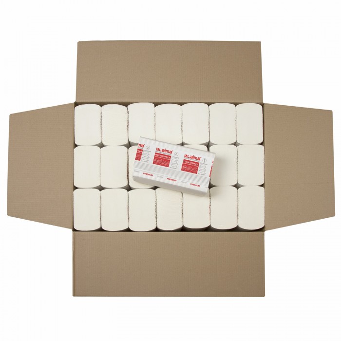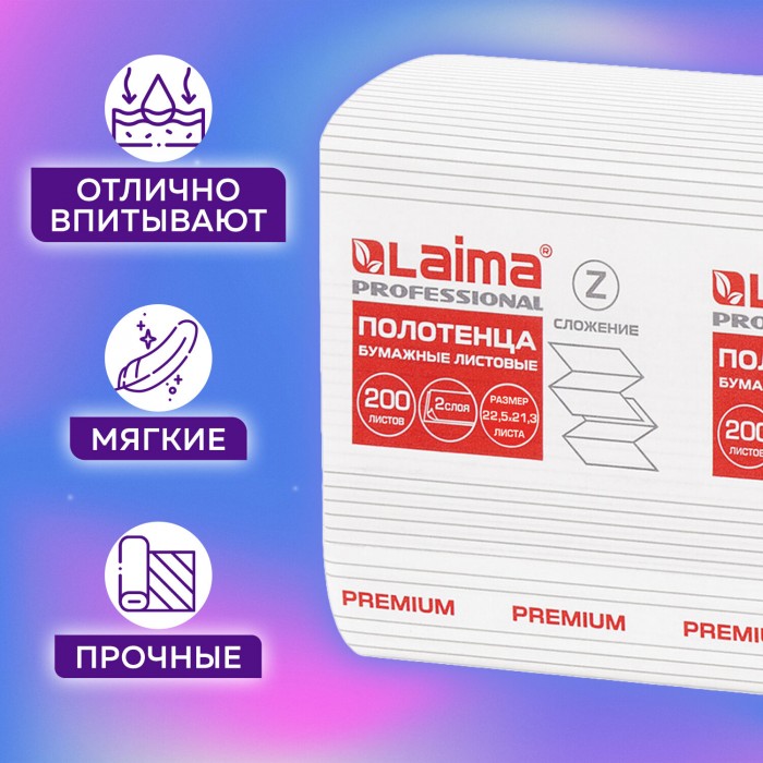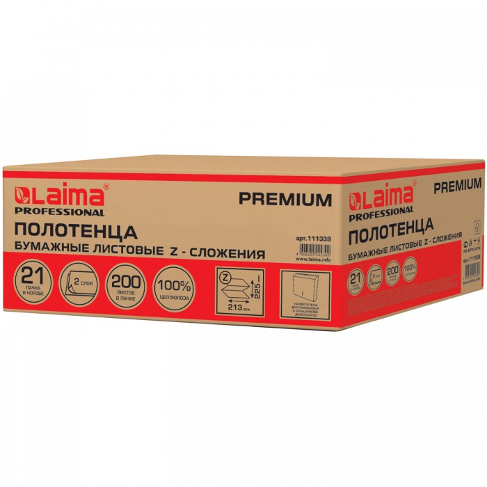 Полотенца бумажные 200 шт., LAIMA (H2) PREMIUM, 2-слойные, белые, КОМПЛЕКТ 21 пачка, 22,5х21,3 см, Z-сложение, 111339